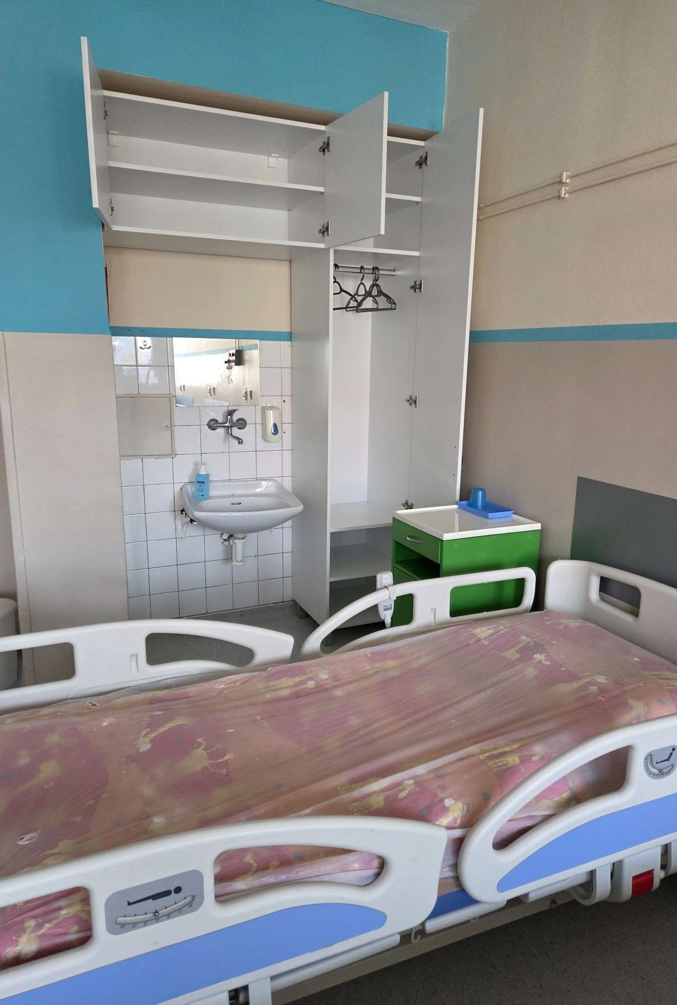 - 8 nových skríň zhotovených na mieru: Tie sú už umiestnené priamo v izbách na oddelení pre deti od 3 do 18 rokov. Slúžia predovšetkým rodičom, ktorí sprevádzajú svoje deti počas hospitalizácie, čím im poskytujú potrebný úložný priestor a zvyšujú ich komfort.