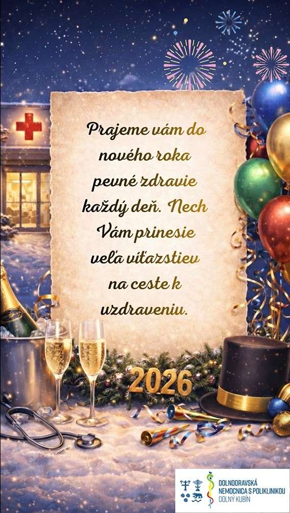 Do nového roka 2026 Vám zo srdca prajeme predovšetkým veľa zdravia, pokoja a nádeje.